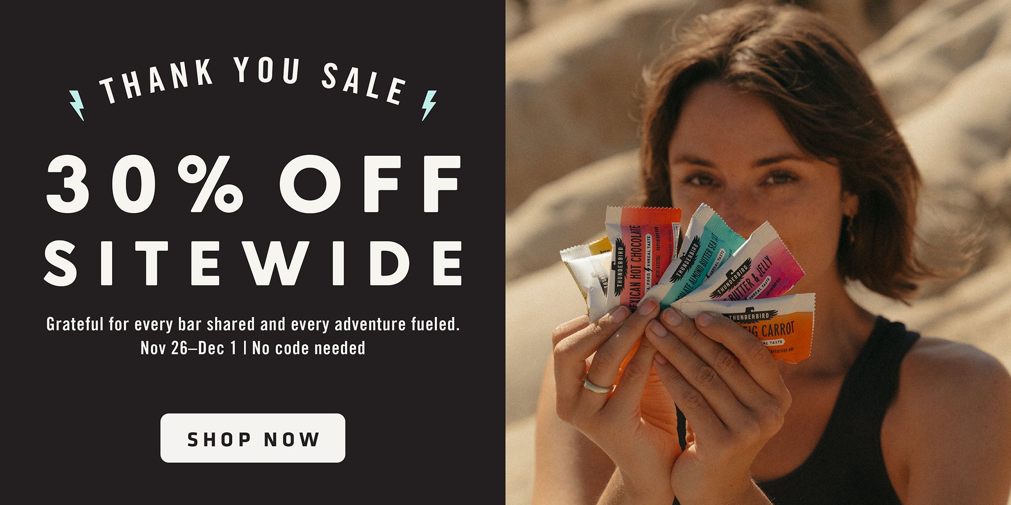 Now available! Our mini Thunderbird Bars deliver the same bold flavor and energy boost you love, now in a perfectly portable size. Each bite-sized bar packs the signature Thunderbird punch of premium ingredients and natural energy!