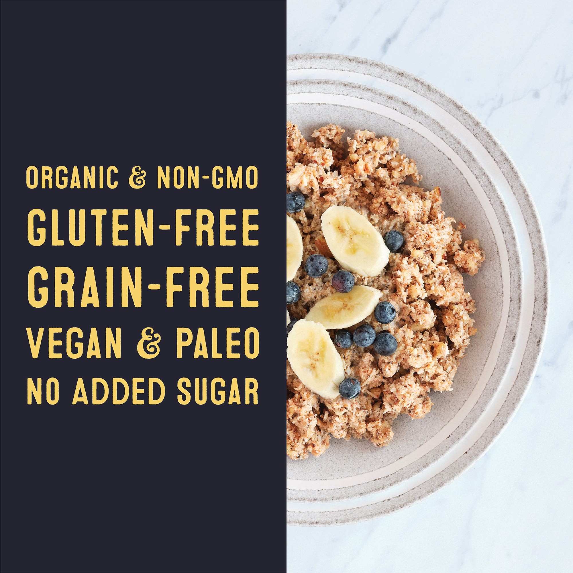 Simply pour Grain-Free Cereal into a bowl or travel mug, and add hot water or your favorite milk. Enjoy hot or cold, instant or overnight, as is, or with your favorite toppings.